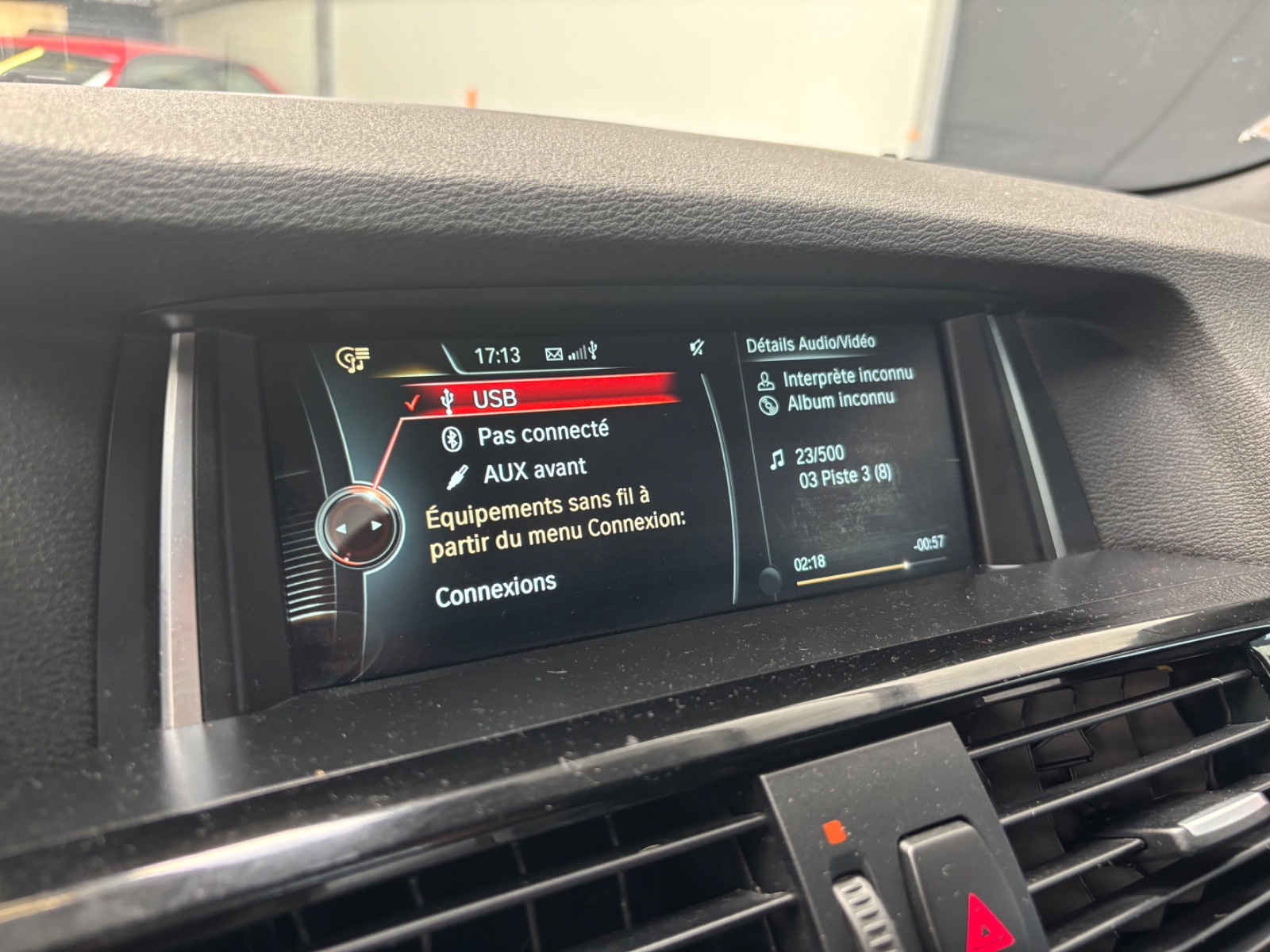 Port audio USB et prise AUX IN dans l'accoudoir central AV