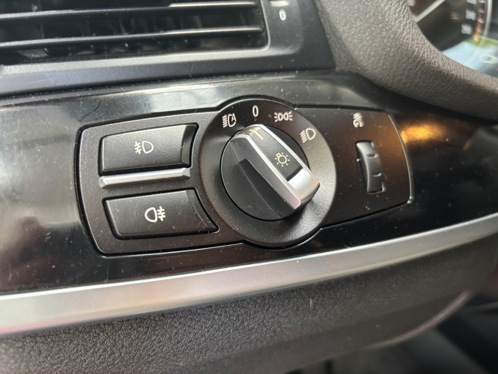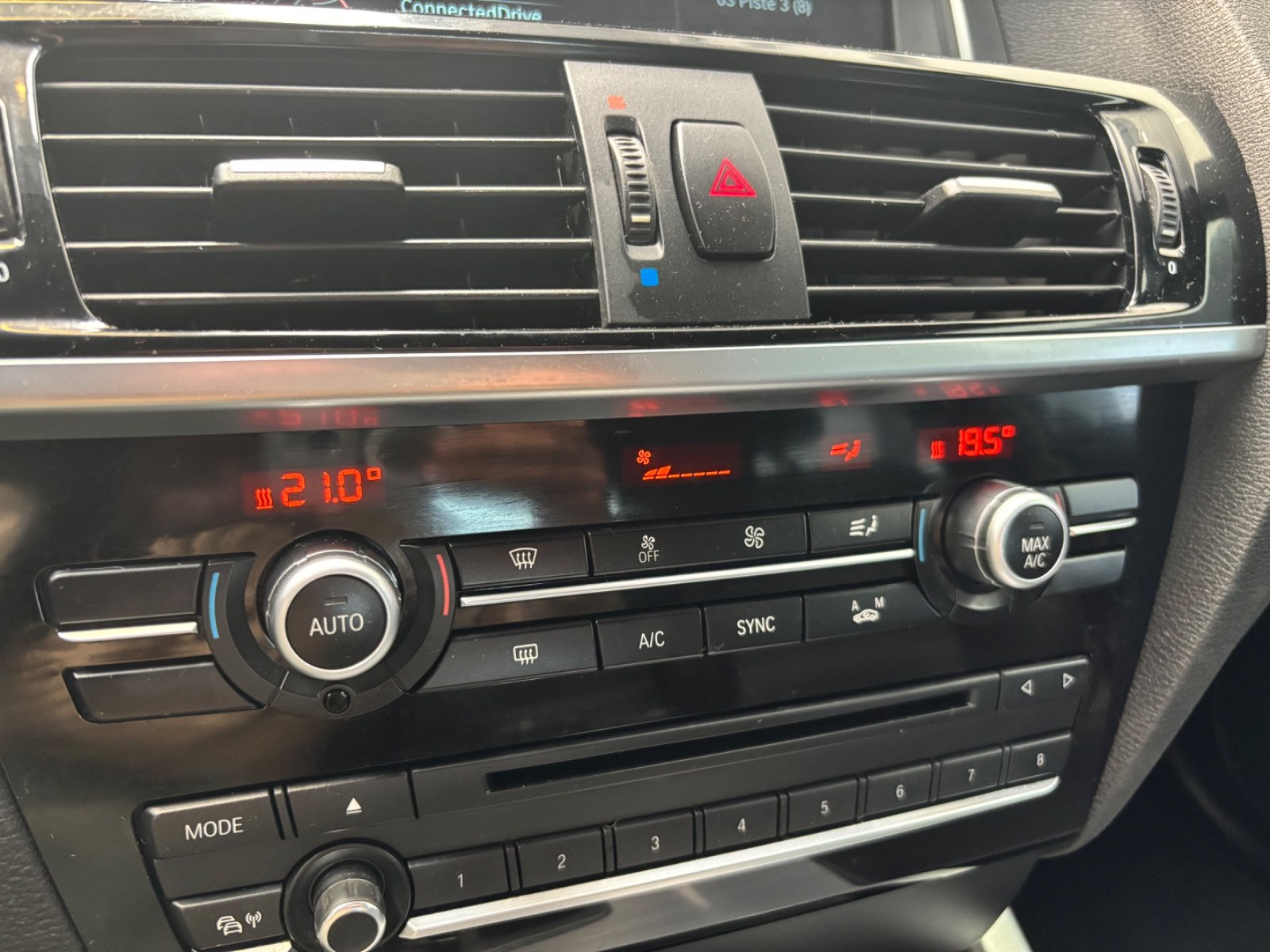 Console centrale type F15 (commandes des systèmes de climatisation + audio) avec application brillante "schwarz" entourant l'ensemble