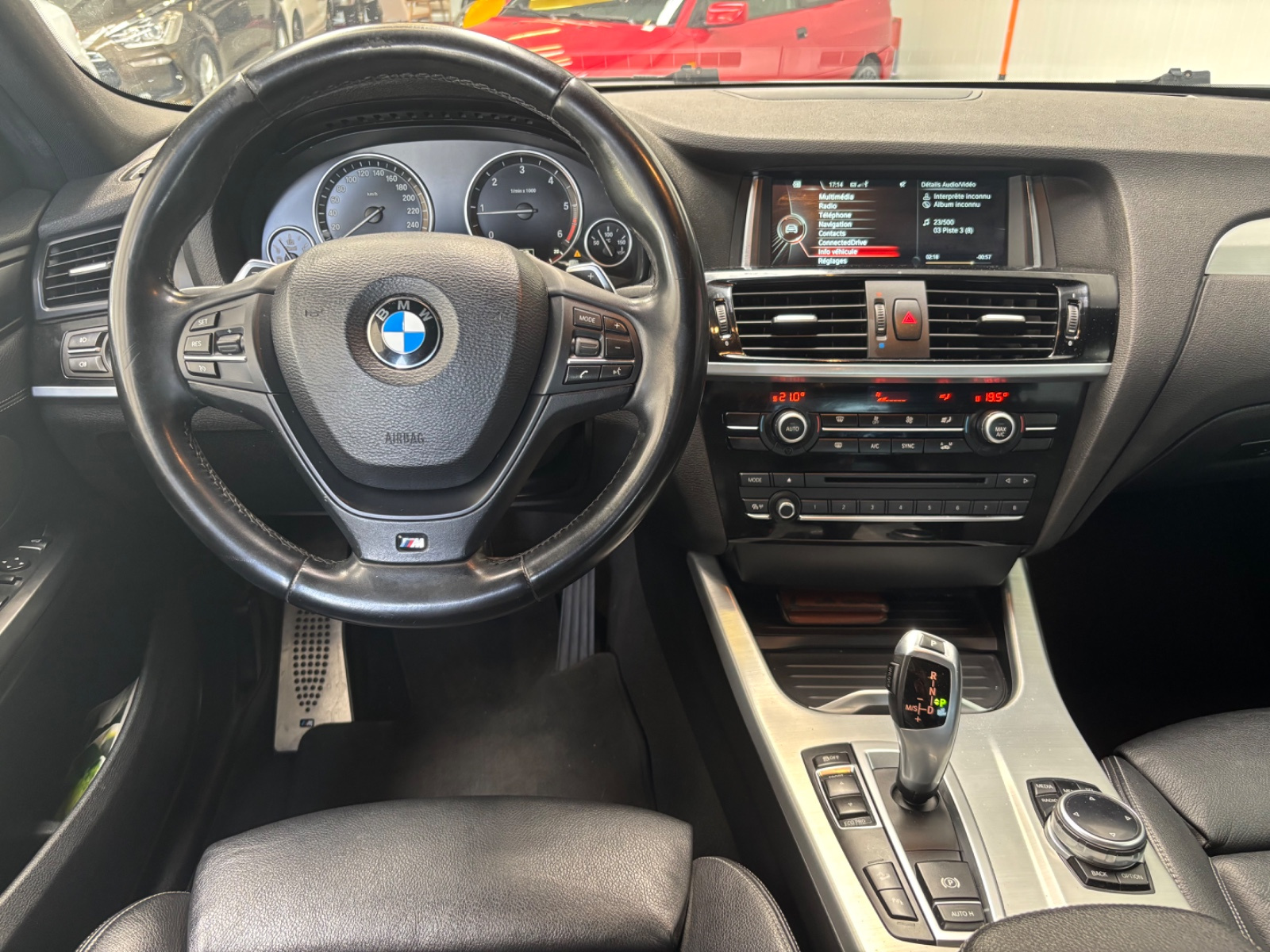 Application brillante "schwarz" au niveau de la console centrale et autour des commandes audio climatisation