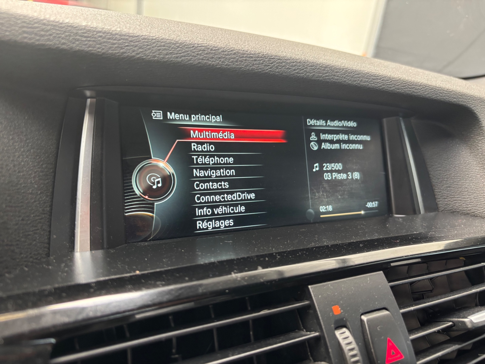 Ecran d'information central couleur 6,5'' (800x480 pixels) pour affichage des données de l'ordinateu de bord, noms/n° de tel. et titres musicaux avec insert en aluminium mat de chaque côté