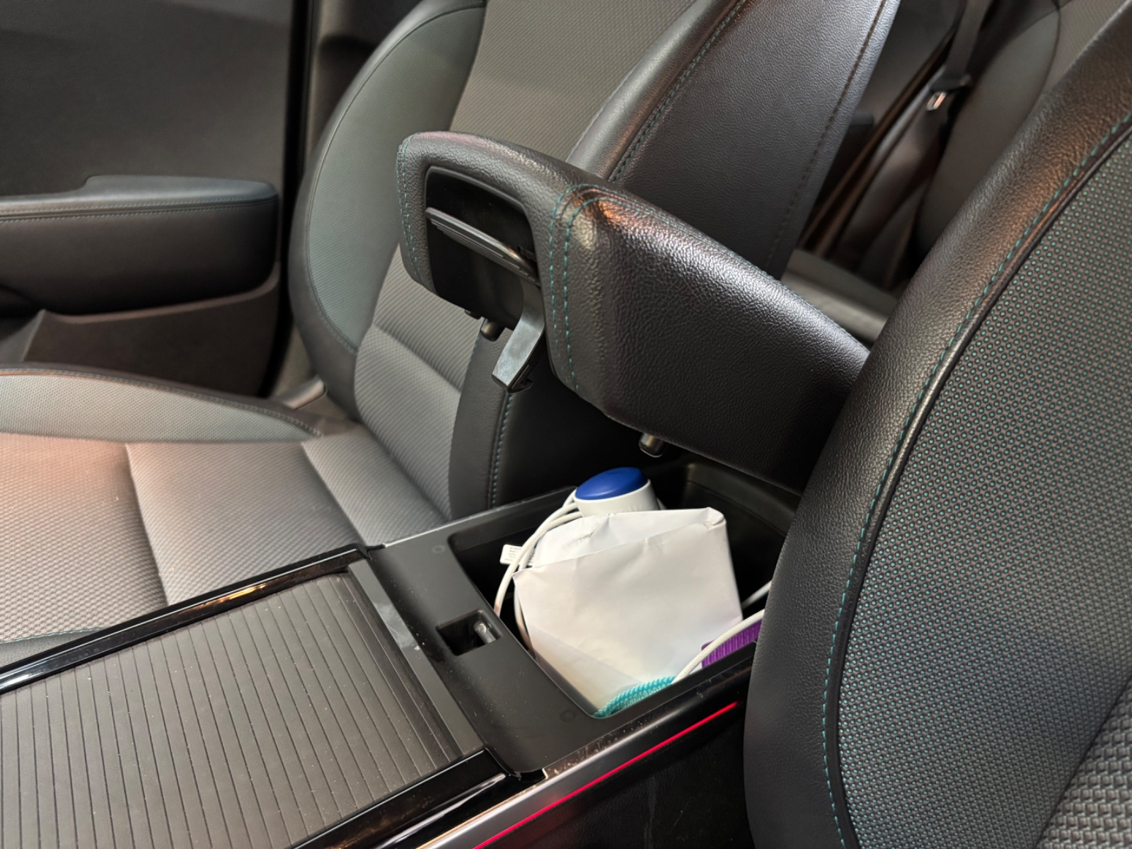 Accoudoir central AV avec compartiment de rangement et prise de recharge USB